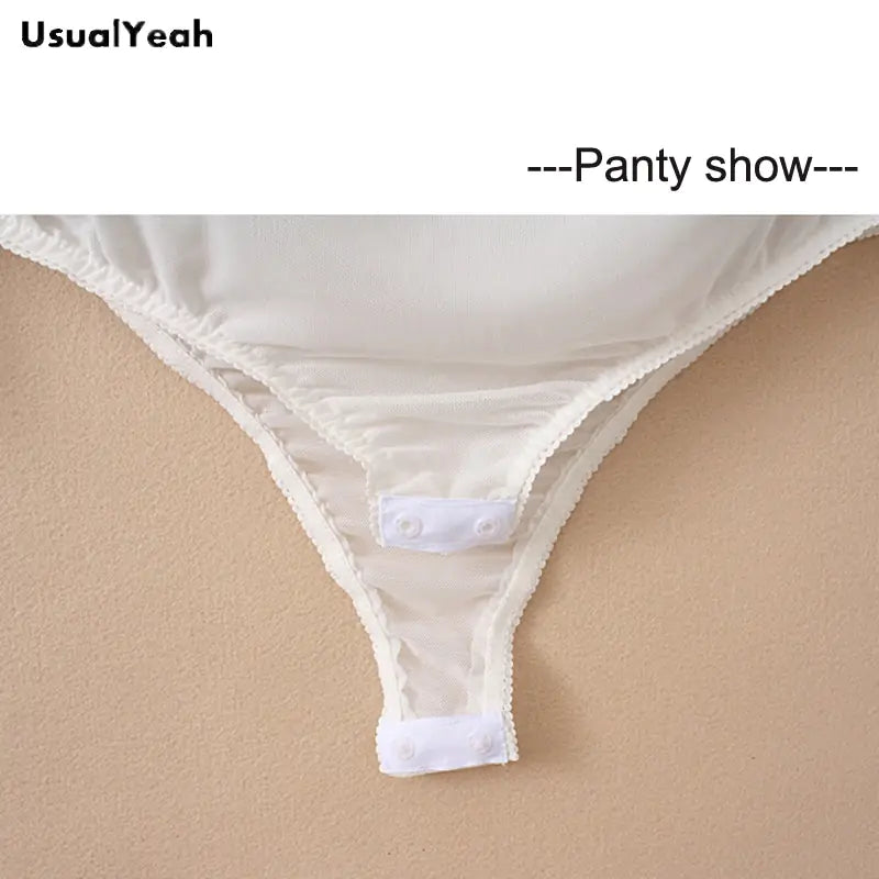 We've got you covered—literally. With its built-in panties, our bodysuit offers seamless styling under skirts, trousers, or jeans. No lines, no fuss, just smooth, polished perfection.
